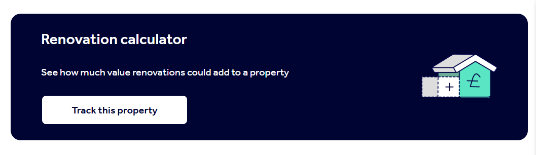 Providing estimates on the value that renovations or extensions may add to a property the renovation calculator is found within the Sold House Price section. If this is an available function for the property you'll see the below. Start by choosing 'Track this property'.