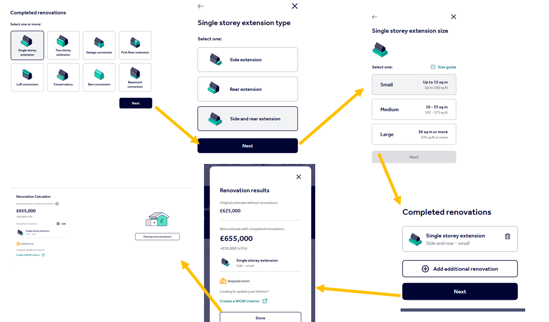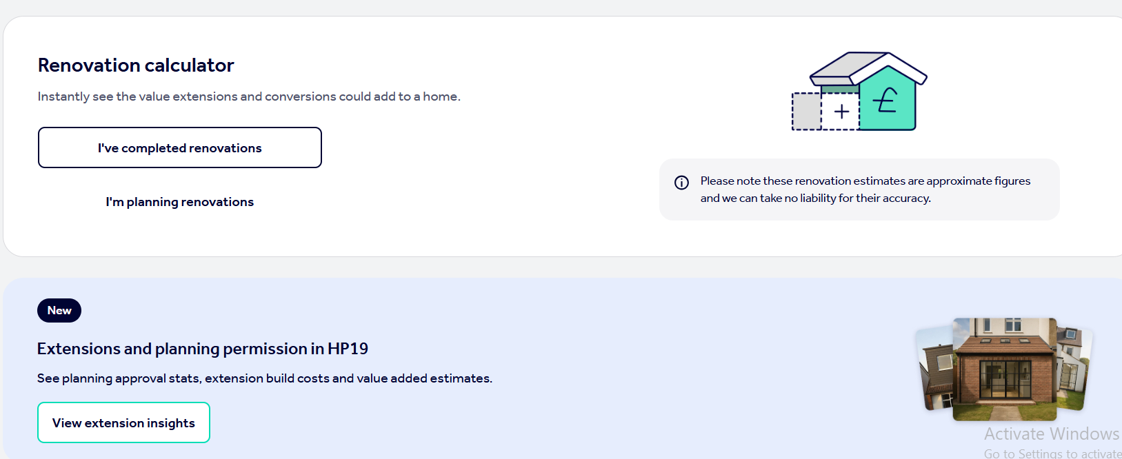 After answering the required questions to Track the property you will have the option to explore renovations and extensions estimates.